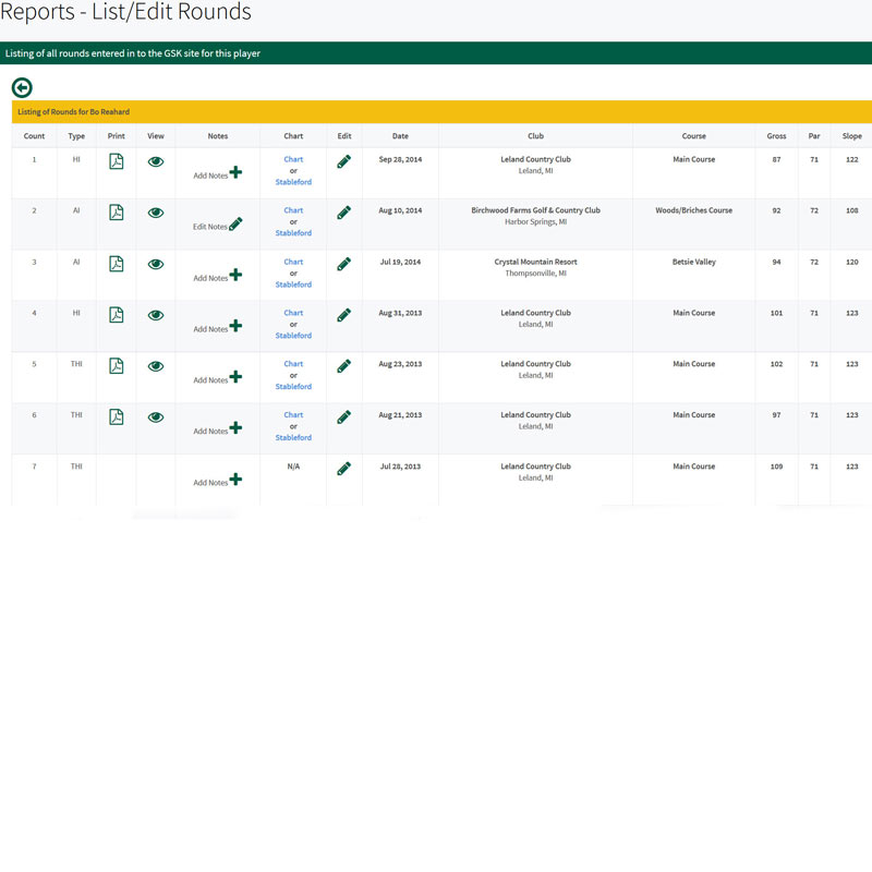 But such analysis takes time. GolfScoreKeeper provides an easy solution. After the round, you can sit down at any computer with access to the Internet and enter your scores.